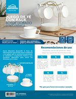 El Juego de Té viene con 6 tazas y 6 platos organizados en un rack metálico que realza tu cocina; mientras que la cafetera incorpora jarra de vidrio termorresistente, filtro removible y válvula antigoteo para una experiencia práctica, limpia y rápida. ¡El complemento perfecto para tus momentos de pausa, desayuno o reuniones!