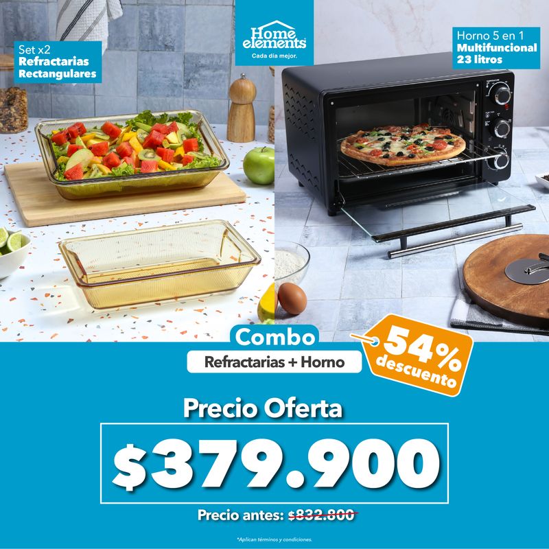 Prepara tus recetas favoritas con este Combo Home Elements que une potencia, versatilidad y elegancia en tu cocina.