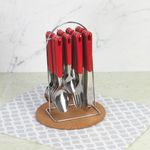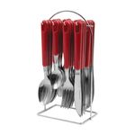 Dale un toque moderno y funcional a tu mesa con el Juego de Cubiertos Home Elements de 24 piezas, ideal para el uso diario en el hogar. Fabricados en acero inoxidable con mangos en polipropileno, ofrecen resistencia, durabilidad y un agarre cómodo. Incluye soporte metálico cromado, perfecto para mantener los cubiertos organizados y siempre a la mano, optimizando el espacio en tu cocina o comedor.