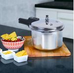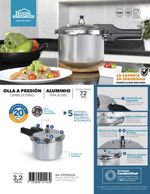 Olla a presión capacidad de 3,2 litros, presión nominal de 72 Kpa, cuerpo en aluminio y tapa en acero Inoxidable, cierre externo, apta para estufas eléctricas y a gas, versátil y fácil de usar.