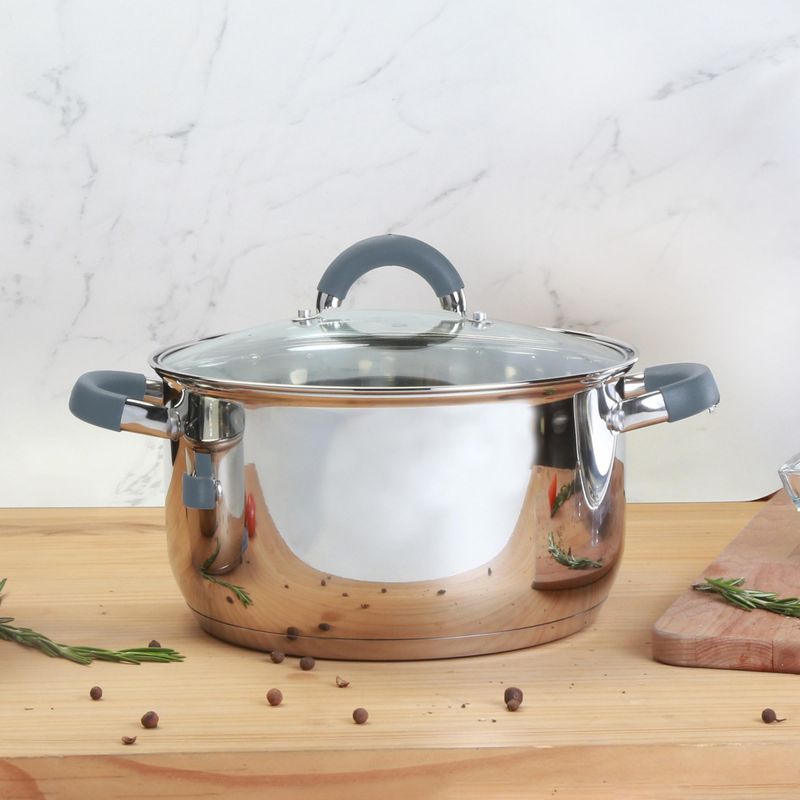 La olla en acero inoxidable Home Elements es perfecta para preparar tus recetas diarias con confianza y eficiencia. Fabricada en acero inoxidable 18/10, ofrece alta resistencia al óxido y una cocción uniforme gracias a su base conductora de calor. Incluye tapa en vidrio templado con regulador de vapor, ideal para conservar el calor y los sabores, garantizando calidad y durabilidad en cada uso.