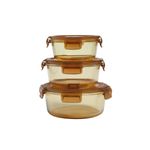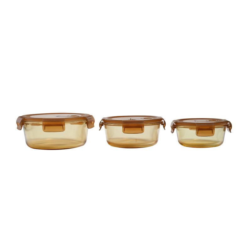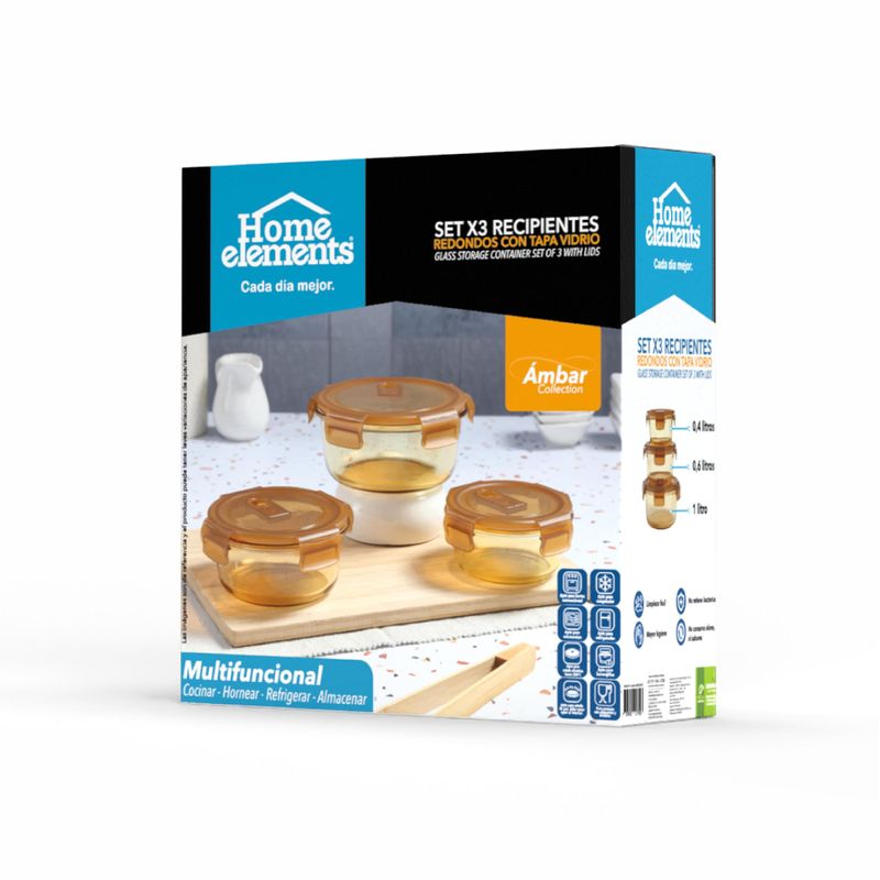 Organiza, conserva y prepara tus alimentos con estilo gracias al set de 3 refractarias redondas con tapa de la colección Ámbar Home Elements. Fabricadas en vidrio borosilicatado de alta resistencia, soportan temperaturas extremas, son más duraderas que el vidrio común y mantienen la frescura de tus preparaciones sin absorber olores ni sabores. Sus tapas herméticas aseguran mayor higiene y conservación, ideales para usar en horno, microondas, congelador o llevar directamente a la mesa con un diseño elegante y práctico.