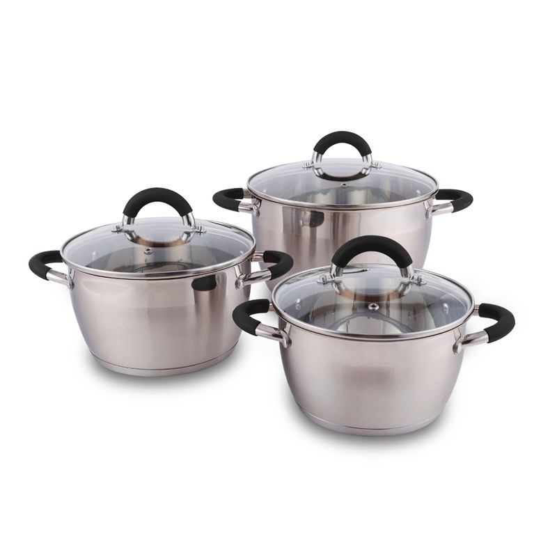 Incluye un set x3 ollas en acero inoxidable con tapas de vidrio y regulador de vapor, ideales para cocinar más rápido y con mejor control. Sus asas y pomos cubiertos en silicona te ofrecen un agarre cómodo y seguro. Además, son aptas para cocinas eléctricas, gas e inducción, perfectas para cualquier hogar.