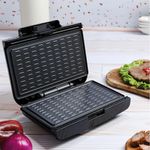 Sus placas con doble capa de antiadherente evitan que los alimentos se peguen, mientras que sus manijas termo resistentes permiten un uso seguro. Ideal para carnes finas, sándwiches, obleas, galletas y más. ¡Práctica, compacta y pensada para tu día a día!