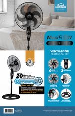 Incluye el ventilador pedestal MaxiFlow Élite de 18", diseñado para brindar un flujo de aire superior gracias a sus 6 aspas, 3 velocidades, oscilación horizontal de 90° e inclinación de 30°. Su motor con doble sistema de rodamiento en balineras selladas reduce la fricción y aumenta la vida útil, permitiendo hasta 20 horas de uso continuo. Además, su parrilla con pintura electrostática y base redonda brindan mayor seguridad y estabilidad.