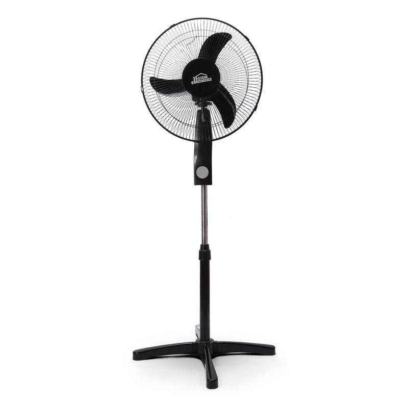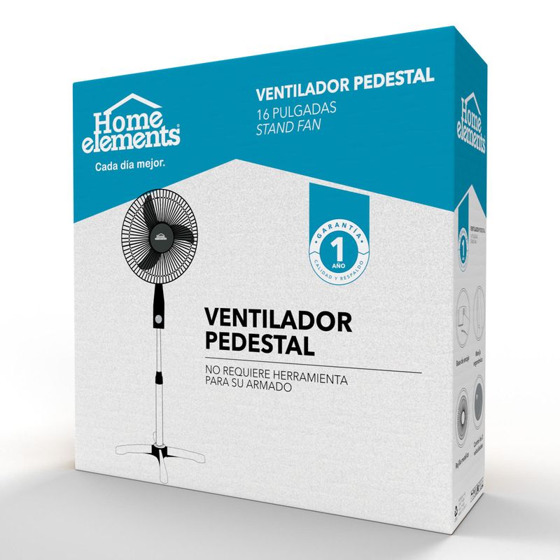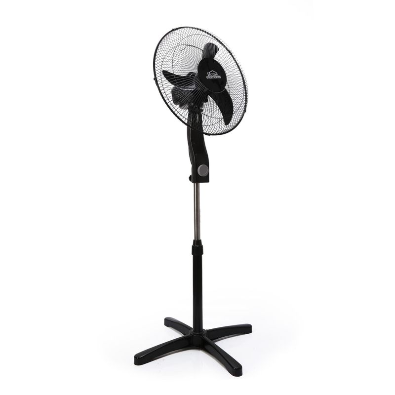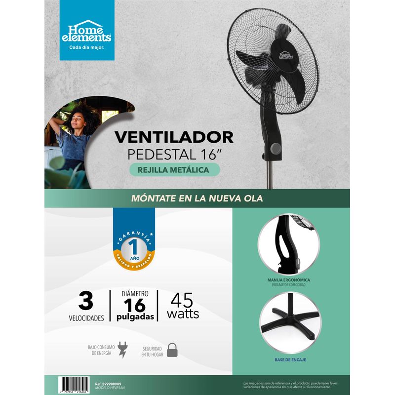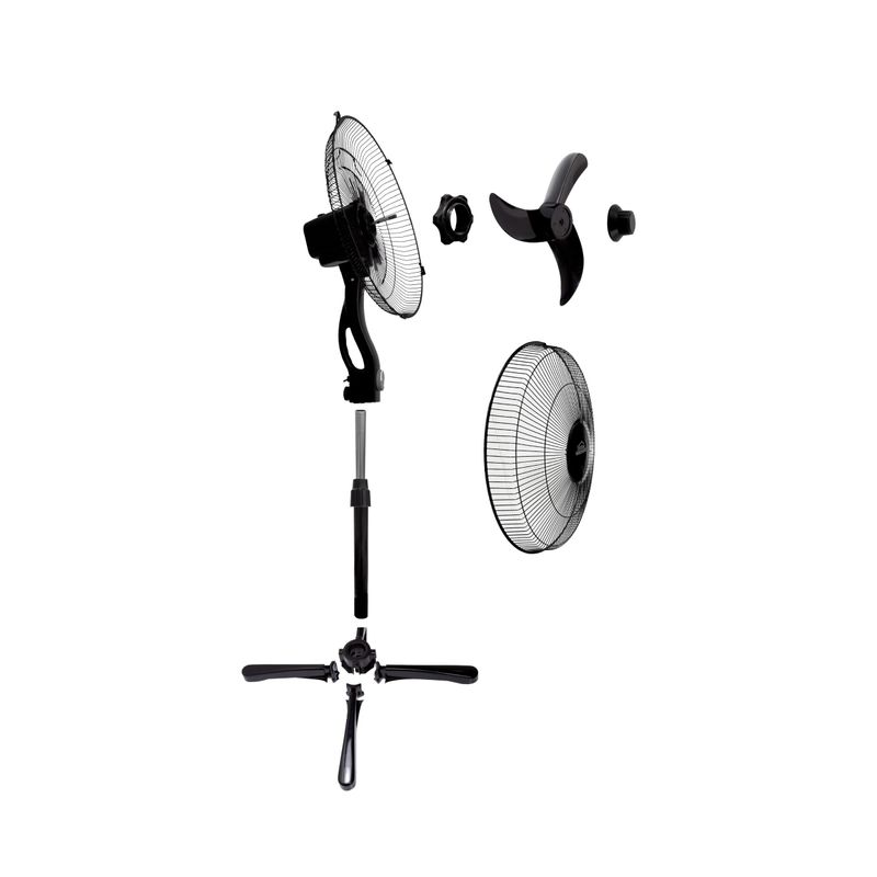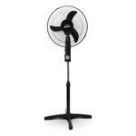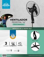 Ventilador de pedestal color negro de 16 pulgadas, aspa de 3 puntas con diseño aereo dinamico, genera gran velocidad de aire, rejilla metalica para mayor resistencia, oscilacion orizontal de 90 grados y vertical de 30 grados, altura ajustable de 140 cm, motor con 45 W de potencia.