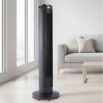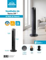Nuevo ventilador de torre 39" Negro, 3 velocidades para controlar el flujo de aire, con motor silencioso y eficiente, cuenta con temporizador hasta 2 horas lo que permite un apagado automático al terminar el tiempo programado.